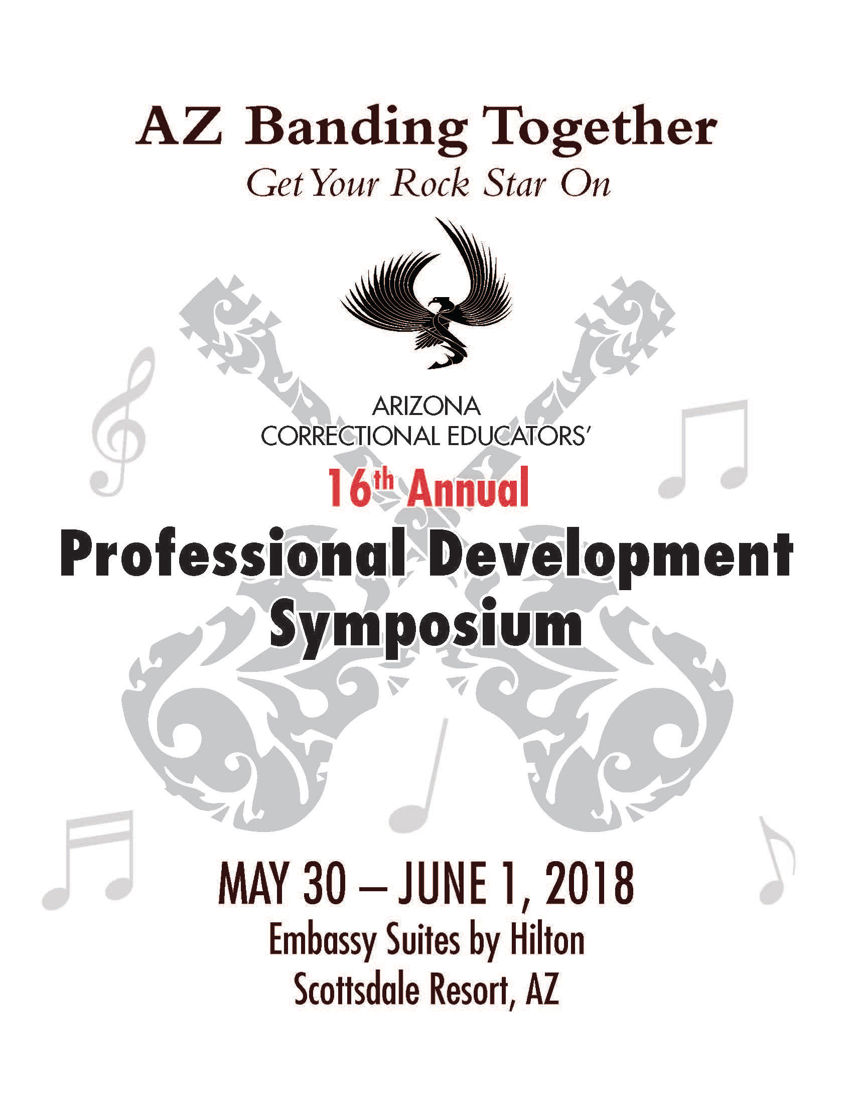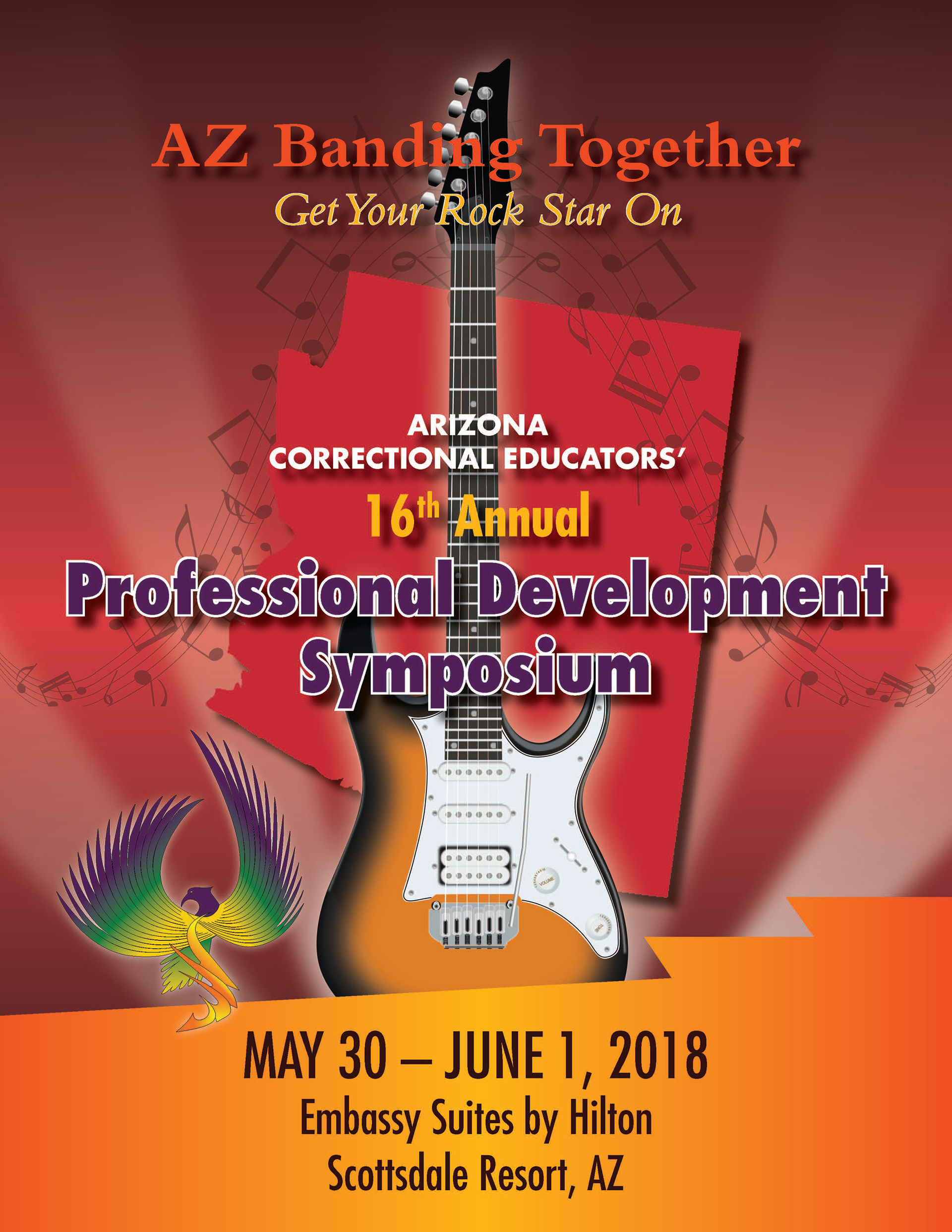 The Arizona Correctional Educators have an annual themed symposium to provide professional development for educators working in secure care facilities. Their 2018 theme was "Rockstar". Adobe InDesign, Illustrator, and Photoshop.